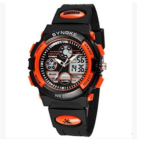 -. Title : Multifunction Kids Sports Watches 5ATM Water Resistance Dual Time Digital Analog Backlight Wristwatches Orange
