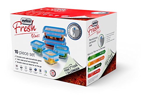 Zyliss "Fresh" Glass Food Storage Container 10-Piece Set with Snap Locking Lids – 100% Leak Proof Airtight - Stackable