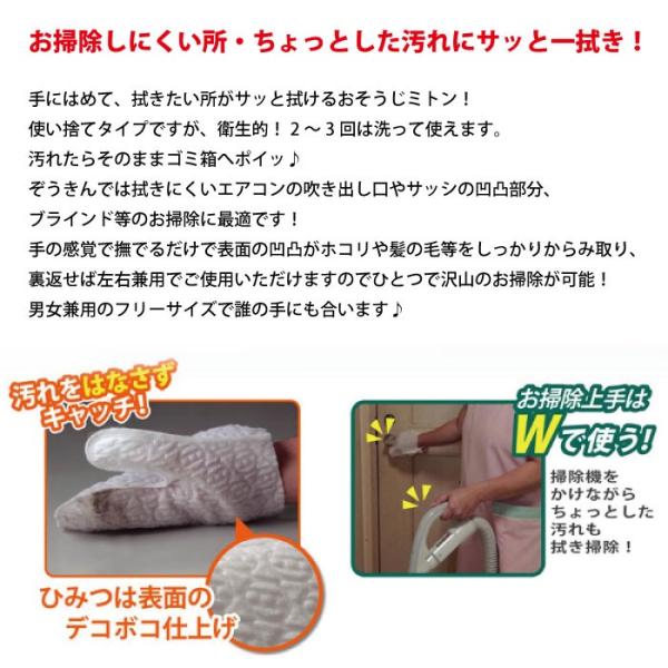 ◆手にはめて、拭きたい所がサッと拭けるおそうじミトンです。