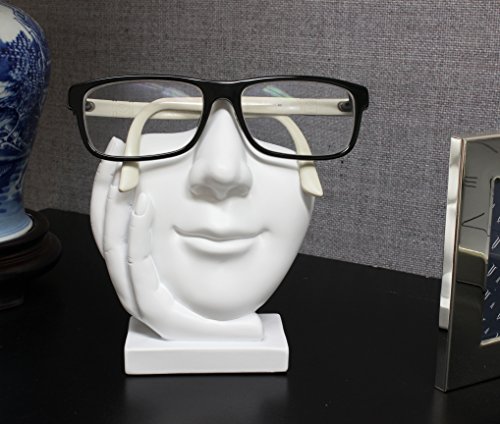 Artsy Face Eyeglass Holder Stand - Sculpted Nose for Eyeglasses or Sunglasses, "Life is Good", White