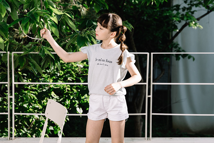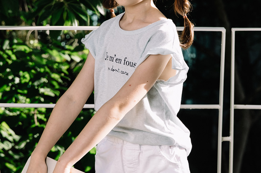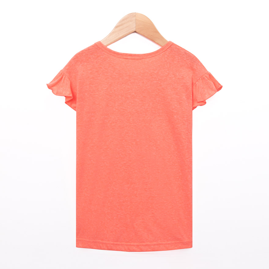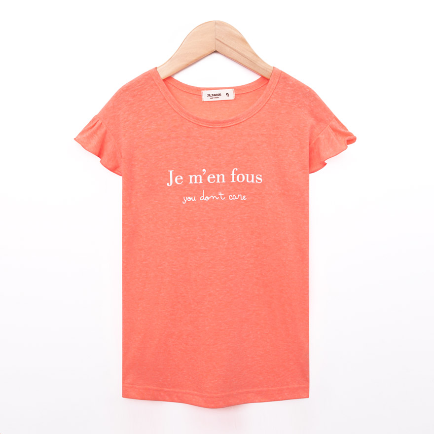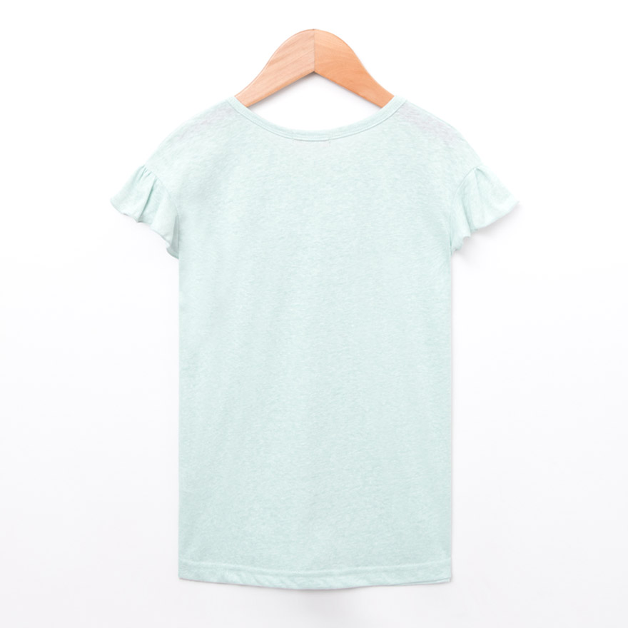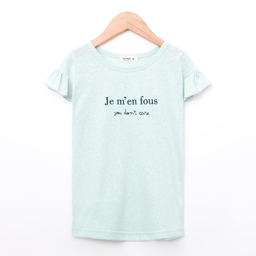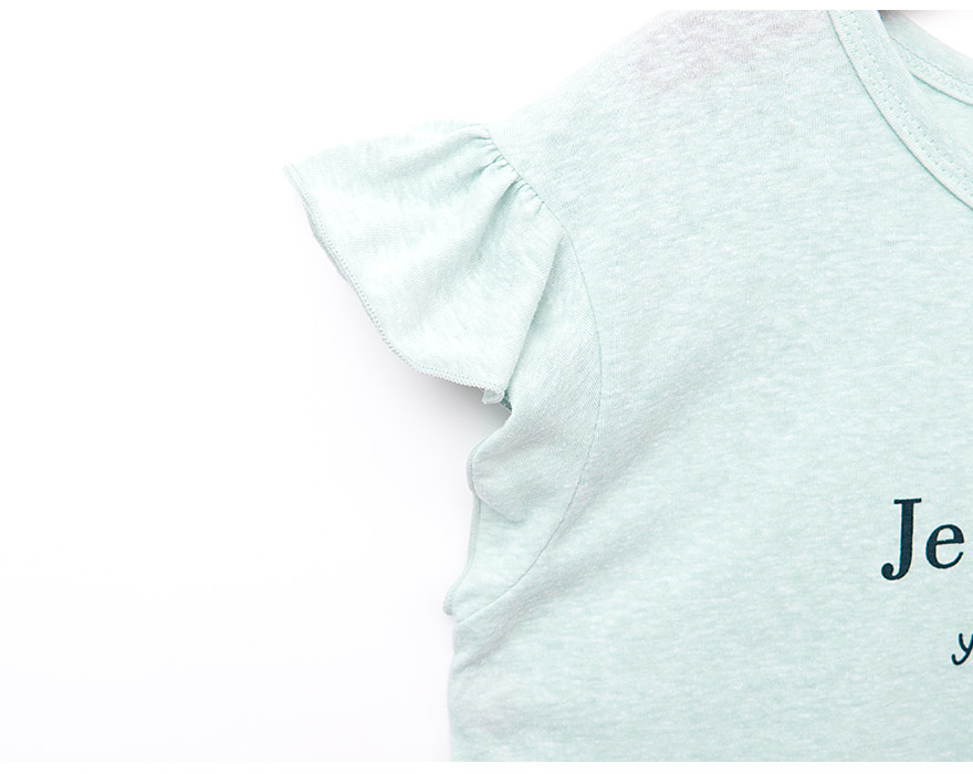 깔끔한 영문 레터링 나염과 러블리한 프릴 소매가 포인트로