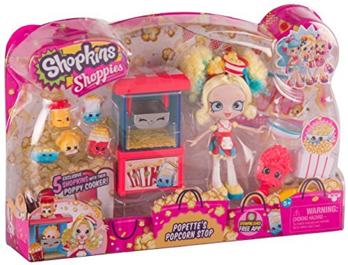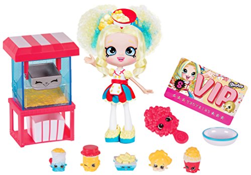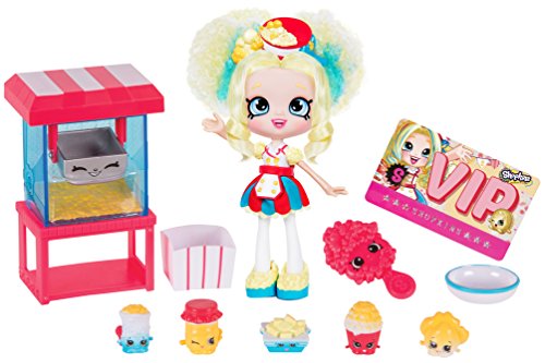 Hang out with Popette at her Popcorn Stand. Bring all your favorite Shoppies to her shop. Set includes 6 exclusive Shopkins and a Popcorn stand