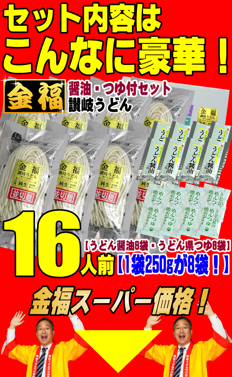 | 調理方法 | 多目のお湯でうどんを茹でた後、流水でもみ洗いをして表面のぬめり、塩分を 取り除き、器に盛ります。 |
