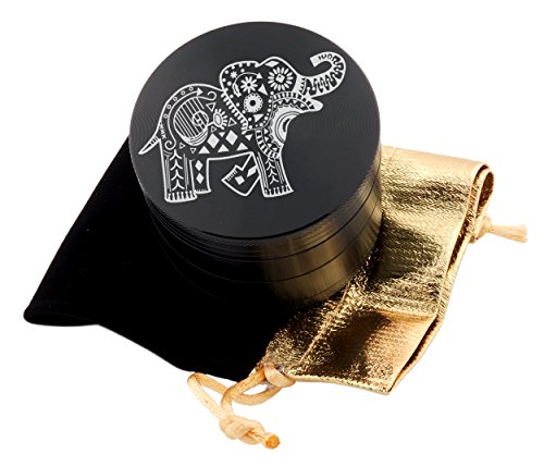 Elephant Laser Etched Design 4pcs Large Size Herb Grinder With FREE Scraper & Velvet Pouch Item # ETCH-G012317-67
