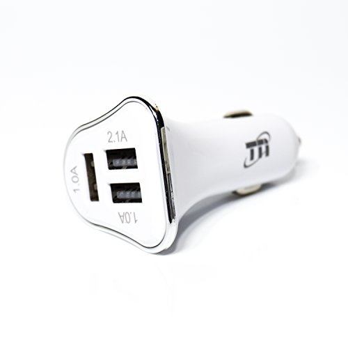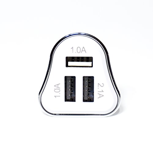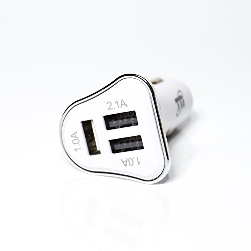 USB Car Charger, TNI New 3 USB Port Car Charger, One Smart Port 2.1A USB Fast Charge Port, and Two Universal 1.0A USB Port for iPads, iPhone 5,6,7, Samsung Galaxy S7, S7 Edge, Note (White)