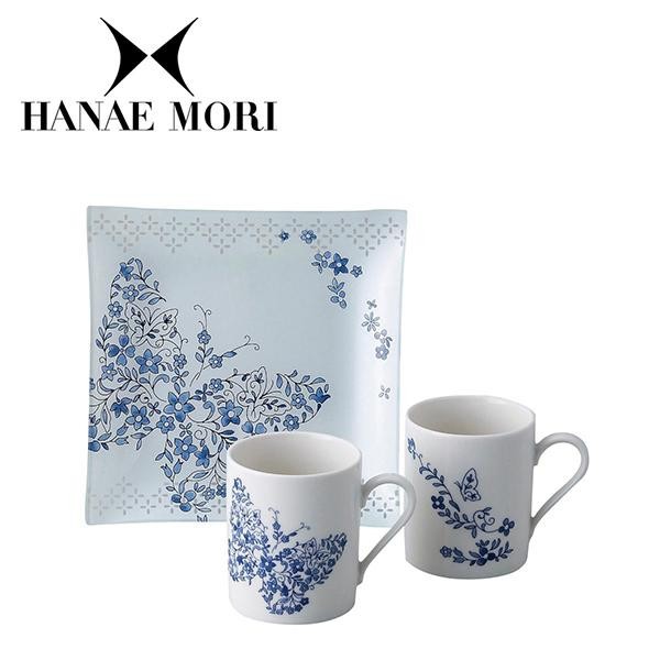 | ハナエモリの象徴である蝶がデザインされた美しいマグとトレーのセット。白とブルーを基調とした上品な色合いです。ご自宅用にはもちろん、ギフトにもオススメです。 |