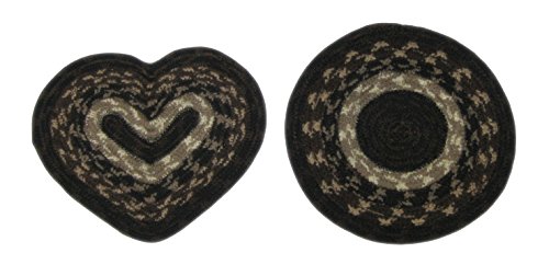 Brown, Black, Tan Braided Heart and Round Trivet Set (2 Items)