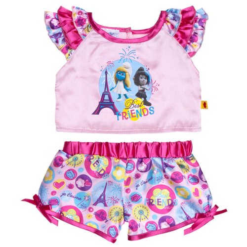 -. Feature : Build a Bear Smurfette Vexy PJs Teddy Size Stuffed Animal Clothing / 2 pc. BFF Pajamas The Smurfs II BAB Collection / Ages 3+