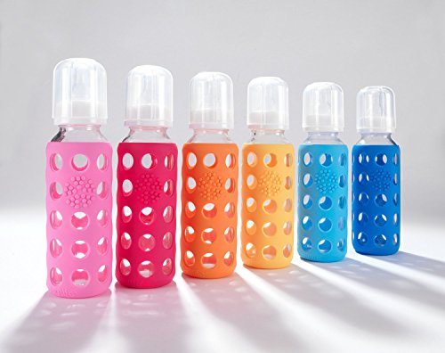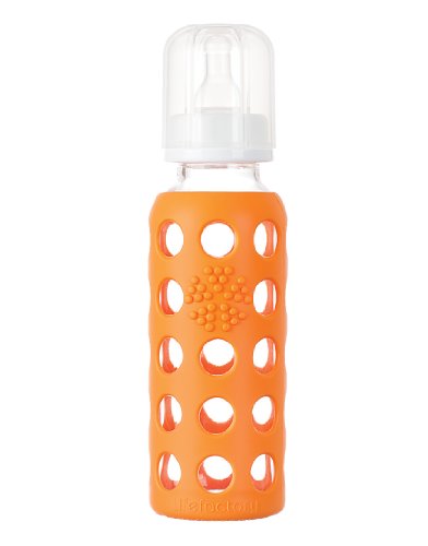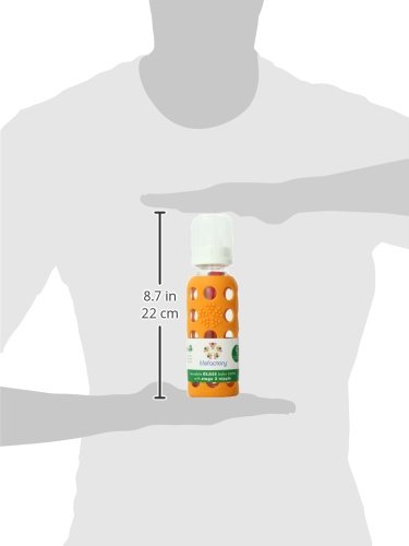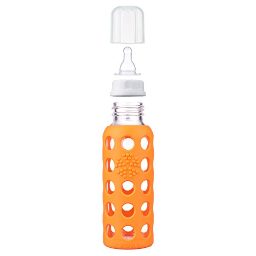 Lifefactory 9-Ounce BPA-Free Glass Baby Bottle with Protective Silicone Sleeve and Stage 2 Nipple, Orange