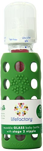 Lifefactory 9-Ounce BPA-Free Glass Baby Bottle with Protective Silicone Sleeve and Stage 2 Nipple, Grass Green