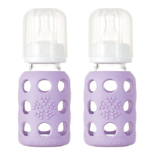 Lifefactory Glass Baby Bottle with Silicone Sleeve, 2 Pack (Lilac, 4 Ounce)