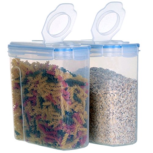 CONVENIENT - Easy to use cereal containers that make it easy to store and and clean up after use. 4 Side-locking lids seal these containers tightly, protecting your food from air and water while keeping it fresh.