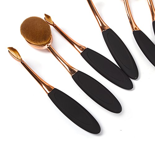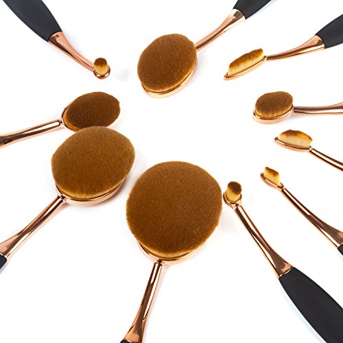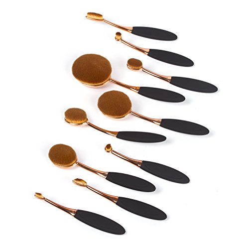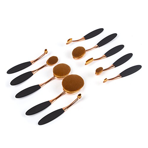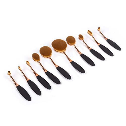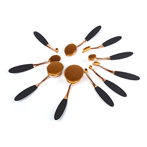 10 Pcs Professional Soft Oval Makeup Brush Set Foundation Brushes Cream Contour Powder Blush Face Brush Toothbrush Style Cosmetic Beaty Tool Sets (Black...