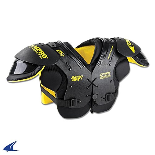 Studio : CHAMPRO Publisher : CHAMPRO Binding : Misc. Product Description STS - Shockwave Tech System disperses energy through shoulder corrugation ridges Dual density padding for optimum fit and comfort Cantilever support system disperses shock and maintains shape of the pad Hook loop attachment system allows for adjustment of pads for custom fit and removal for cleaning Integrated front deltoid pad High impact textured P.E. shells for maximum protection and durability Tempered steel spring reinforced arches 1" elastic straps Pre-drilled for backplate neck collar attachment 0