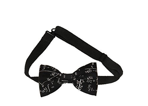 -. Feature : Adult size (Ages 12 years and up) ~ Bow Tie Measures 4.5" Long 2.5" Wide / Pre-tied cotton bow tie is attached to a black cotton twill neckband / Neckband adjusts to fit 15" - 23" neck sizes / Black / White Math / Made in the USA