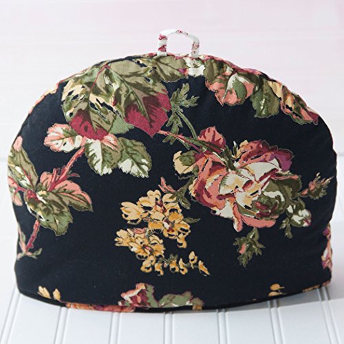 Studio : April Cornell Publisher : April Cornell Binding : Kitchen Product Description This adorable tea cozy is a charming way to add a touch of elegance to your afternoon tea. This one has the beloved and always beautiful Victorian Rose pattern over a black background, and it is even reversible! It is lined with pure cotton for great heat retention. There is a pencil piping trim around the edge and a fabric loop on top for hanging it up. Care is machine washable, and you can tumble dry on low. Made by April Cornell. Be sure to also view our other items from this collection. It goes nicely with the other items from the Black Victorian Rose collection. Laying flat, it measures 13" by 10" by 2". 0