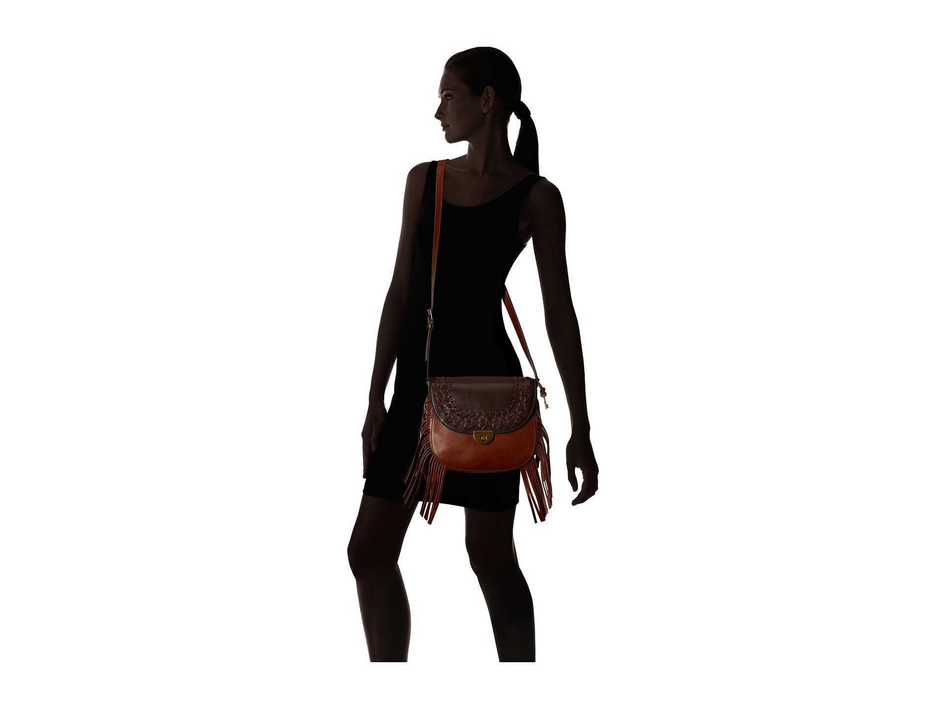 | Product Information SKU: #8771208Finesse your look to include this charming Emi Fringe Large Saddle Bag.Made of leather with woven and fringe detail.Flap with push lock closure.Adjustable crossbody strap.Flat bottom.Lining made of polyester.Interior zip pocket.Interior slip pocket.Imported.This product may have a manufacturer's warranty. Please visit the manufacturer's website or contact us at warranty@support.zappos.com for full manufacturer warranty details.Please note, the hardware color and interior lining may differ from the color shown in the photo.Measurements: Bottom Width: 9 1?2 in Middle Width: 9 1?2 in Top Width: 9 1?2 in Depth: 3 in Height: 8 in Strap Length: 47 in Strap Drop: 21 in Weight: 1 lb 3.8 oz |