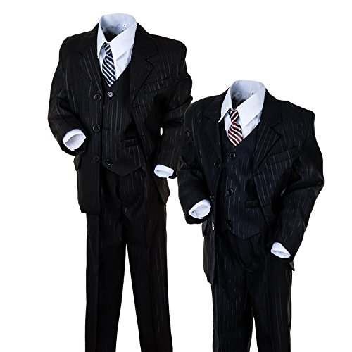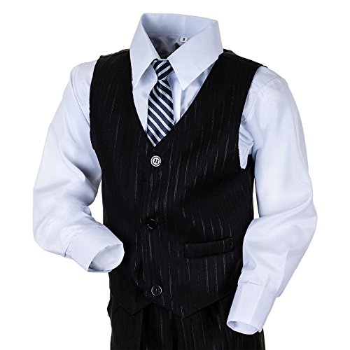 -. Title : Kinderanzug "Finn" 5-tlg. mit feinen Silberfäben in schwarz od. blau - Sakko, Weste, Hose, Hemd u. Krawatte