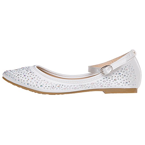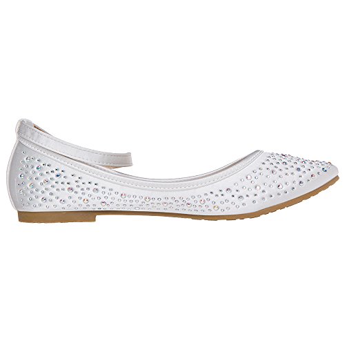 Binding : Apparel Product Description Description The comfortable lady flats with or without ankle strap, which is Perfect for wedding occasions, or with jeans / skirt for an instant vintage chic look. The almond shaped closed toe design gives this style a vintage feel and romantic look. The glittered lattice design sparkles with interest and texture. Added internal padding for all day comfort and Great flexible rubber sole for grip so practical as well as comfortable.