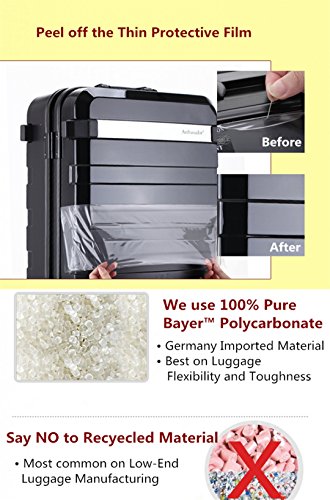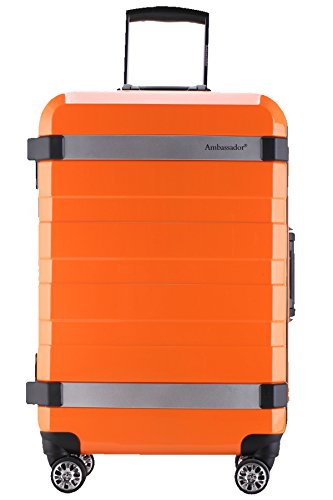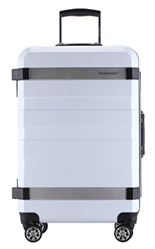 -. Brand : Ambassador -. Department : unisex-adult -. Feature : 100% pure Germany imported Bayer polycarbonate, which makes the case lightweight and durable. / Premium safety zipperless design with heavy duty aluminum and magnesium alloy frame; / Extra strength aluminum alloy pulling rod and high quality Ergonomics designed telescoping handle / Double spinner rubber wheels assure exceptional maneuverability and keep zero weight on your arm, chrome-accented. / Integrated 3 dial TSA accepted combination lock. 24" x 16.25" x 10.5" (27" x 18" x 10.5" including wheels and handles), 12 lbs -. ProductGroup : Apparel -. ProductTypeName : LAGE -. Title : Ambassador Lage Fashion Polycarbonate AL Frame 25" Medium Trip Spinner Suitcase