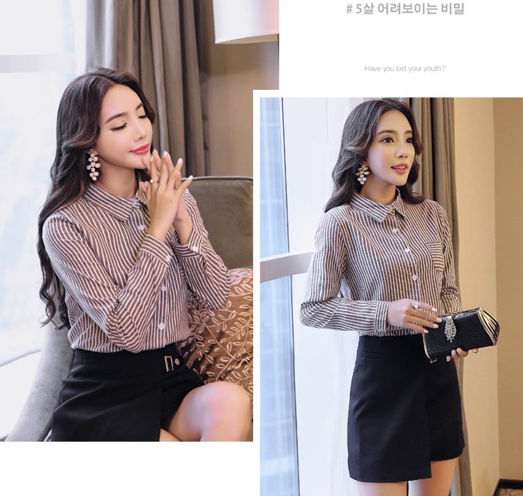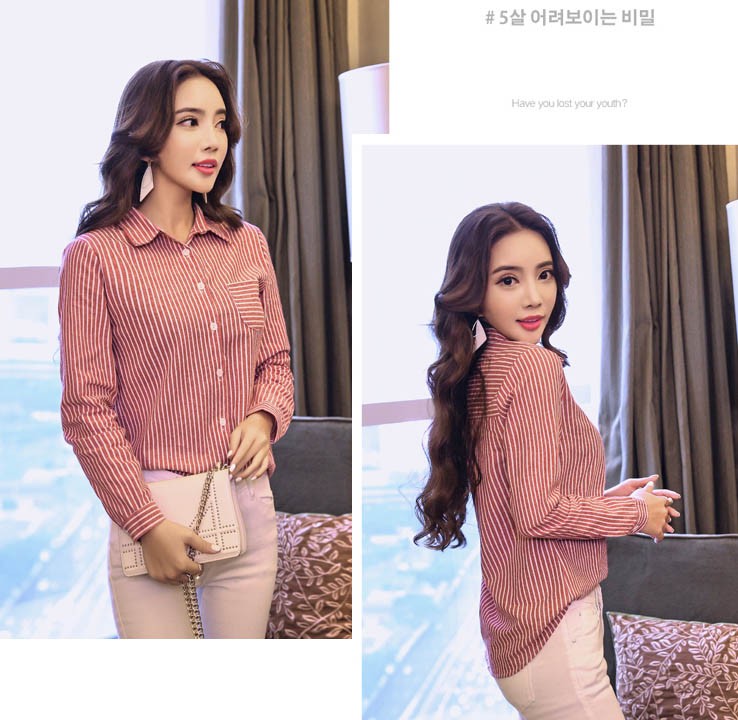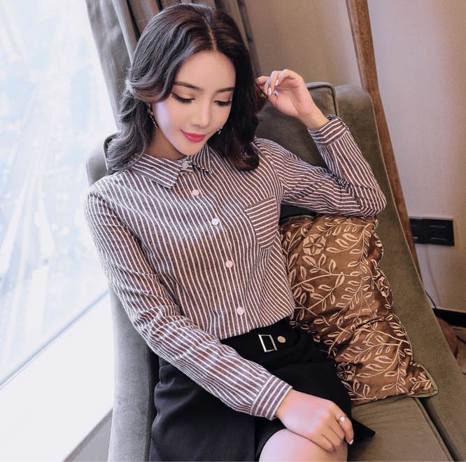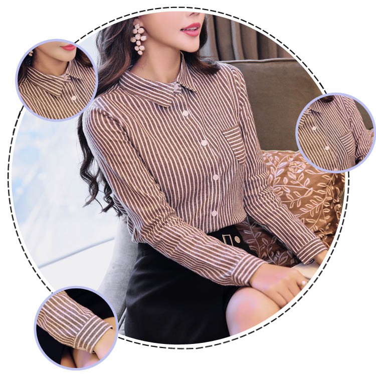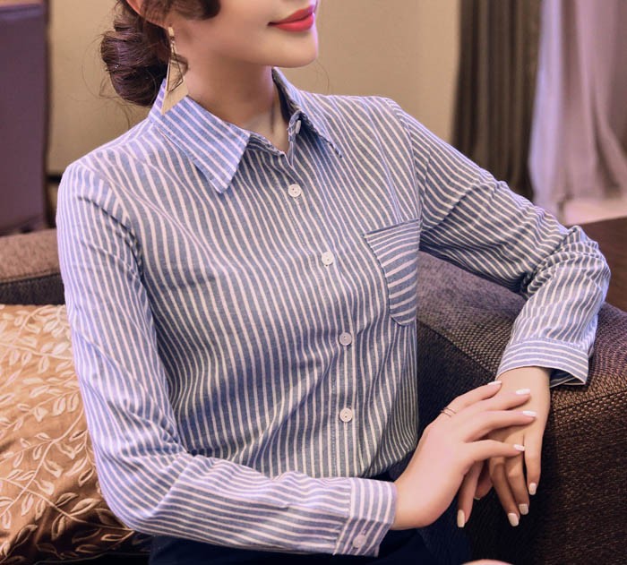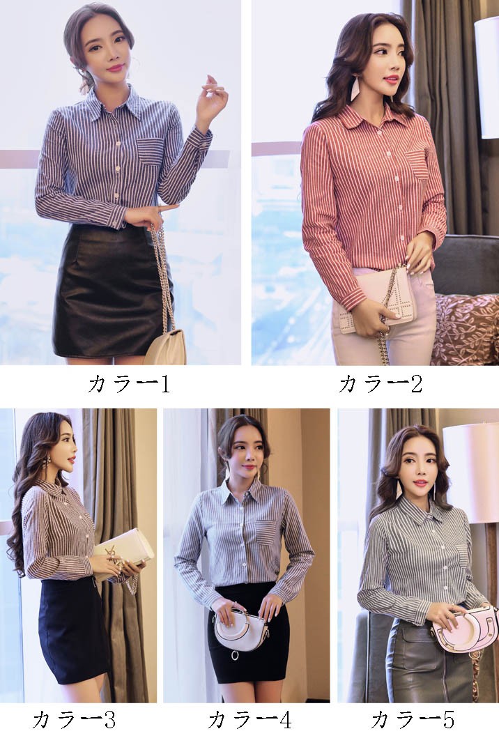 【入荷後営業日2,3日以内出荷予定 通関待ちや不良により出荷遅くなる場合はメールにてご連絡いたします。メール受信設定によっては正常に受信されない場合はございますので、 弊社からのメールを予め受信頂くようご設定くださいませ。】 トップス シャツブラウス シャツ ストライプ柄 ボーダー ボタン 襟 えり 長袖 レディス レディース 春 新作 2018ストライプ柄襟付きシャツブラウス◆サイズ:M着丈61肩幅37袖丈55胸囲88L着丈62肩幅38袖丈56胸囲92XL着丈63肩幅39袖丈57胸囲962XL着丈64肩幅40袖丈58胸囲100◆素材:コットン、ポリエステル