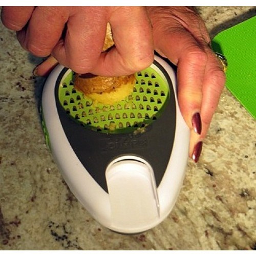 The opposite side of the container holds the sliced ginger. Use the cover from the grater blade as a juice extractor. Simply place it over the grated ginger and gently press producing fresh ginger juice to add to drinks and dressings.