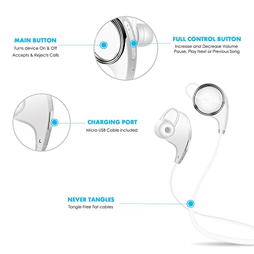 4. Unique neck-strap design for easy carrying, simple-to-use: control all functions of your music (volume, sound, song selection) and calls via simple-to-use user interface on the headphones;