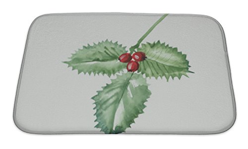 Gear New No Slip Microfiber Memory Foam Green Holly Branch with Berries Bath Rug Mat, 24" X 17"