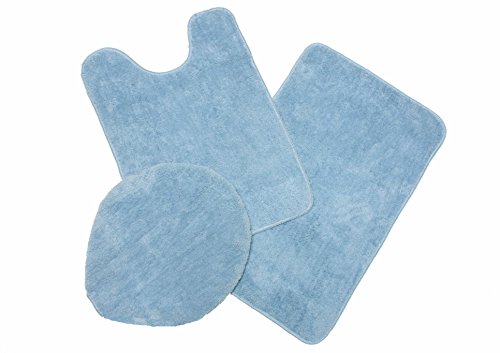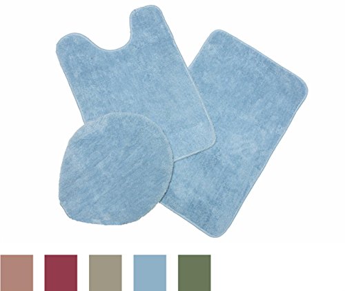 - 3-Piece bath rug set includes an 18"x28" bath rug, 18.5"x22" Toilet seat cover and 17"x24" contour bath rug