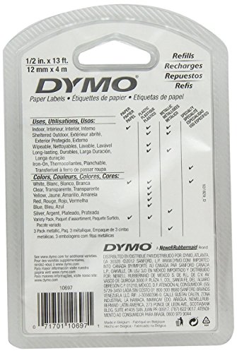 -. Title : Dymo LetraTag Pack Paper Label Refills, White, 1/2 x 13 Ft., Pack of 8