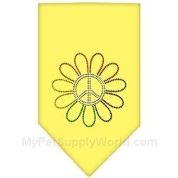 -. Binding : Misc. -. Brand : Mirage Pet Products -. Feature : Small is a 14" x 14" square that is easily folded in half to create the triangle look needed. / Large is a 22" x 22" x 31" pre cut triangle. -. Label : Mirage Pet Products -. Manufacturer : Mirage Pet Products -. PackageQuantity : 1 -. ProductGroup : Pet Products -. ProductTypeName : PET_SUPPLIES -. Publisher : Mirage Pet Products -. Studio : Mirage Pet Products -. Title : Mirage Pet Rainbow Peace Flower Rhinestone Dog Bandana