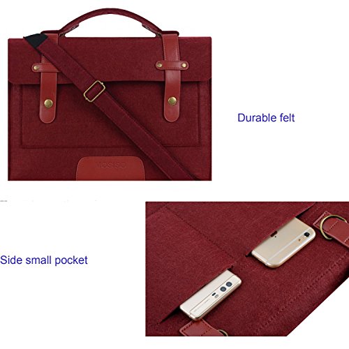 Mosiso Felt Laptop Shoulder Bag for 15-15.6 Inch 2017 / 2016 new MacBook Pro with Touch Bar (A1707), MacBook Pro, Notebook Computer, Compatible with 14 Inch Notebook Ultrabook, Wine Red