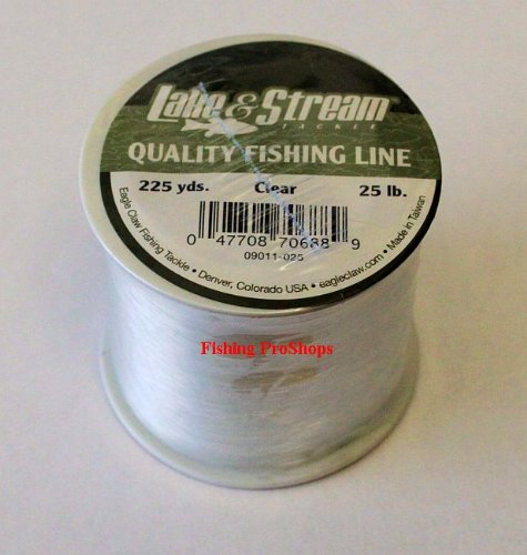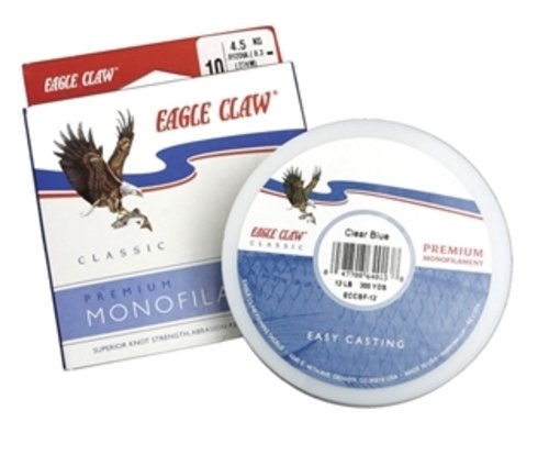 Studio : Green Supply Publisher : Green Supply Binding : Sports Product Description Eagle Claw Monofilament Line Eagle Claw Monofilament Line boasts superior knot strength and high abrasion resistance. Plus low memory and limpness help avoid line twists allowing for longer casts. State Size. Order Today! Line Capacity (lbs. test): 4, Yards: 900; Line Capacity (lbs. test): 6, Yards: 800; Line Capacity (lbs. test): 8, Yards: 670; Line Capacity (lbs. test): 10, Yards: 500; Line Capacity (lbs. test): 12, Yards: 400; Line Capacity (lbs. test): 15, Yards: 300; Line Capacity (lbs. test): 20, Yards: 275; Line Capacity (lbs. test): 25, Yards: 225; Line Capacity (lbs. test): 30, Yards: 200; Eagle Claw Monofilament Line, Clear 0