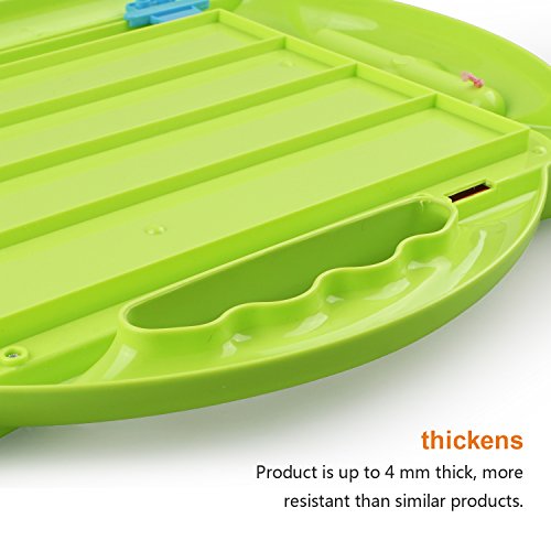 -. Feature : Magnetic Drawing Board: Newly-designed colored drawing board toy allows your kids to draw, write, or just scribble on it, encourages them use their imaginations with this magnetic doodle board / Large Writing Area: This doodle board has a 275*180mm large drawing screen to encourage kids to doodle freely ; comes with pictur book, guiding toddlers to draw step by step if they like / Multi-colored Drawing: The magnetic powder is designed as 4 color partition panel - yellow, green, blue and red, making the pictures you draw are colored instead of normal black color / Easy Slide Eraser: The slide eraser is very effective for erasing the board, simply swipe back and forth to wipe out the doodles and start your new creativity / Safe and Convenient: Made of high-quality ABS plastic, safe and environmental, not easy to break; Designed with handle, lightweight for easy use