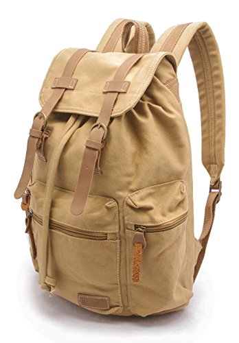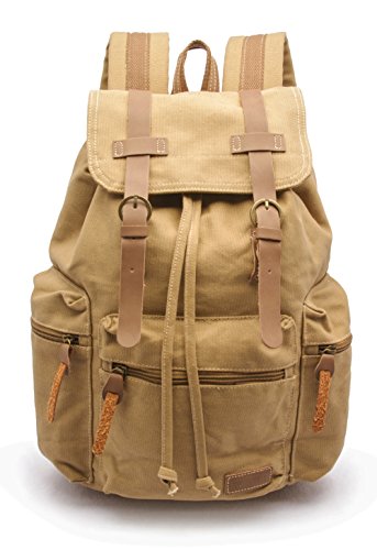 Feature : Classic casual backpack features magnetic closing straps, drawstring main bag closure, and easy sliding zippers. / Padded Laptop Compartment - Specially designed to protect laptops up to 15.6 inches in screen size. High quality "fur" lining provides scratch-free handling of electronics. / Bucket interior provides ample space for this medium size backpack. Includes 3 exterior zipper pockets, main storage area, and laptop sleeve for all portable electronics, books, and accessories. / Style: Rucksack Bookbag Satchel School College Retro Business Travel Bag. For all Apple Macbook Pro and Air, Ultrabooks, Notebook PCs, Laptop Computers, Netbooks - 10, 11, 11.6, 12, 13, 13.3, 14, 14.7, 15, 15.4, 15.6 inches. / Materials: 100% cotton canvas and vegan leather. Dimensions: 17.5 x 12 x 6.5" and under 2 lbs. Laptop Compartment: fits 15" wide (max dimension) laptops.