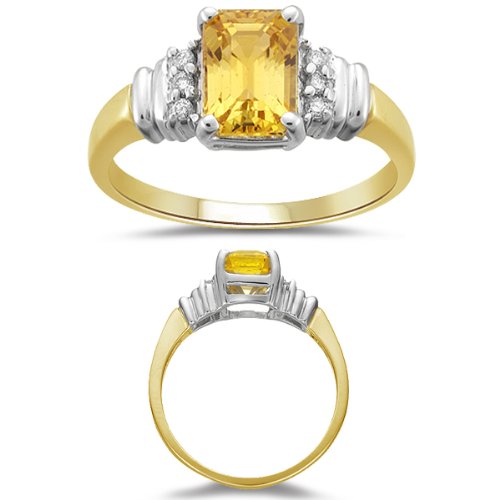 -. Title : 0.08 Cts Diamond & 1.50 Cts Yellow Sapphire Ring in 14K Two Tone Gold