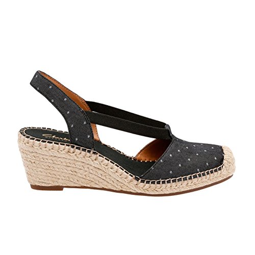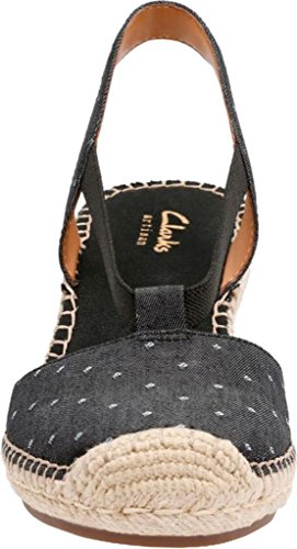 Studio : Clarks Publisher : Clarks Binding : Shoes Product Description A fusion of textures defines this women's sandal from the clarks® artisan collection. crafted of cute fabric uppers with a summery woven wedge, it cushions the foot with extra padding at the heel, synthetic linings, an ortholite® footbed, and rubber outsole. this slingback sandal adds a playful, on-trend finish to your outfit. 0