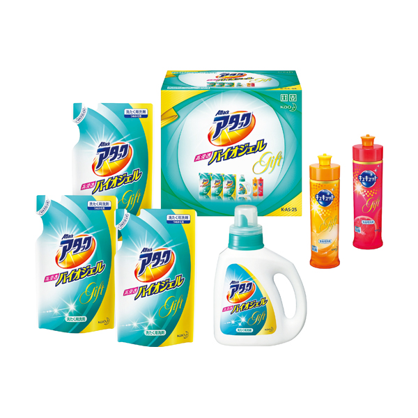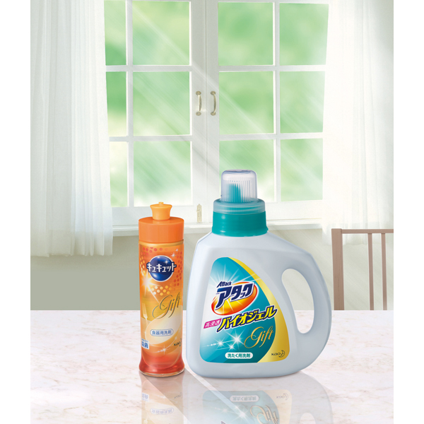 ●液体のアタックとキュキュットが入ったどなたにも喜ばれるセットです。