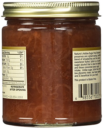 - In addition to fresh, great-tasting strawberries, these jam preserves contain the natural sweetener Xylitol. Xylitol is a 5-carbon sugar alcohol that is safe for diabetics and those concerned about sugar-intake. Unlike sugar, Xylitol has a very low glycemic index and fewer calories.