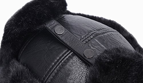 -. Feature : Material£ºhigh quality Pu Leather and Faux Fur / Head Circumference Range : 57cm/22.44inch; 12cm/4.72inch; 5cm/1.97inch (Hood * Height * Brim).One size fits most. / The thick fur and the ear claps can keep you warm in cold days.The Pu Leather material is more wind-resistant and dirt-resistant,even more fashion and cool. / Foldable design, different ways of wearing.You can put the earflaps down or fold them as you like. / Ideal for outdoor activities such as skiing,snowboarding,hunting,and etc,and also good for casual wear.
