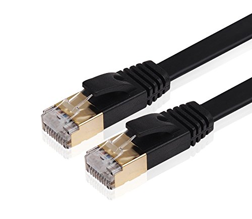 NCElec Flat STP Cat7 Ethernet Cable, Safe for In-wall and Outdoor Use (26Ft/8m, Black)