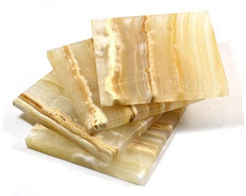 Jupiter Amber Aragonite Stone Coasters, Square, 3 3/4" wide, Set of 4 - The Artisan Mined Series by hBAR