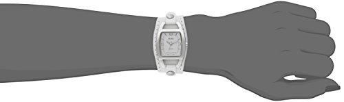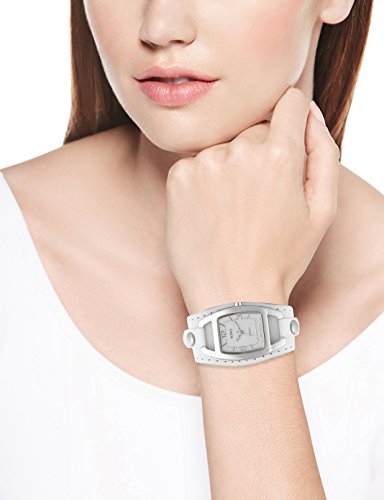 -. Feature : Japanese quartz movement with analog display / Durable mineral crystal, rectangle case; white dial; PU strap with buckle closure; silver studs on band / Analog-quartz Movement / Case Diameter: 26mm / Not Water Resistant