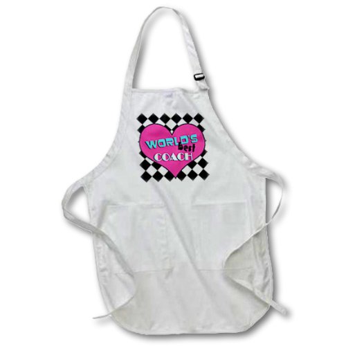 3dRose apr_25413_2 Worlds Best Coach Pink-Medium Length Apron with Pouch Pockets, 22 by 24-Inch