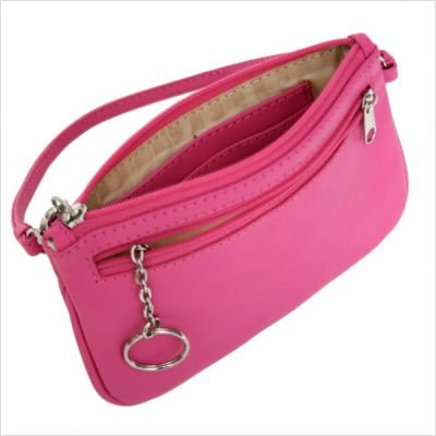 -. Feature : Elegant & chic wristlet made in Top Grain Nappa Leather. / Zippered front pocket where you can keep your change / Detachable key ring. / Main zippered compartment / 3 card pockets for your credit cards and/or ID
