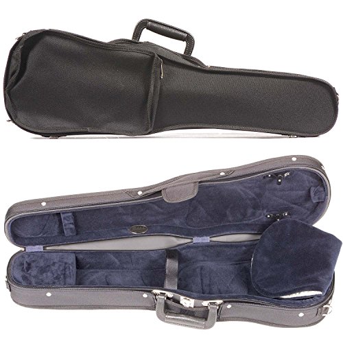 -. Feature : Black exterior with blue velour interior without suspension / Sturdy plywood construction with heavy duty zipper and latch / Two bow holders / Attached canvas cover with D-rings / 1/2 violin size