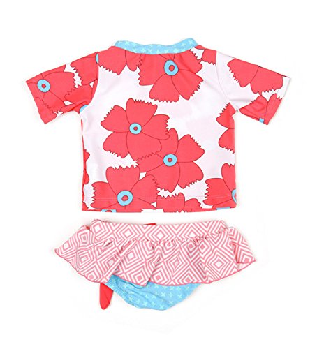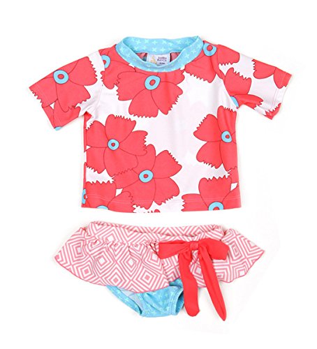 -. Feature : Floral prints in short sleeve rash guard. / Wrap skirt bottom with a ribbon. Fully lined. / 82% Polyester, 18% Polyurethane. UPF 50+ Protection.
