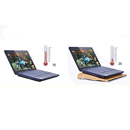 -. Feature : Cool Material: Bamboo material's cooling ability plus USB fan heat dissipation always cool down you laptop or MacBook / Functional cooling fan laptop: Vented design helps keep your electronic device cool. Striped hollowing design is anti-skid and also a way of heat-dissapating / Laptop stand with fan: Adjustable bamboo pad with a USB fan is compatible for laptops, tablets, and notebooks. Laptop size fits for 14 inches / Quiet and Ergonomic Comfort: Angled to place your computer in the best position to use and create a more comfortable experience / Ergonomic mechanical design, allowing you to maintain a comfortable time in working.Modern elegant design and practical construction, smooth surface, excellent touch feeling with this Beautiful tablet holder stand