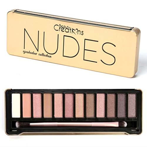 -. Title : Beauty Creations Eyeshadow Collection Palette in 12 Matte Shimmer Shades with Double Ended Brush and Mirror - Nudes