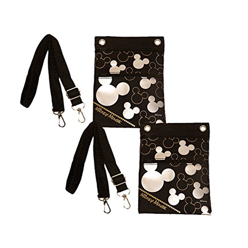 Disney Mickey Mouse Small Multi Purpose Shoulder ID Holder Black and Silver Gold Set Of 2
